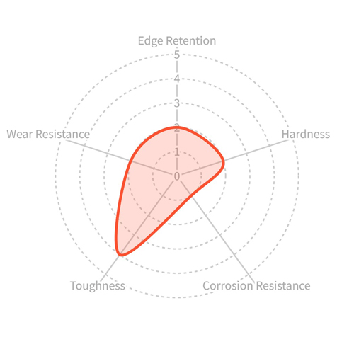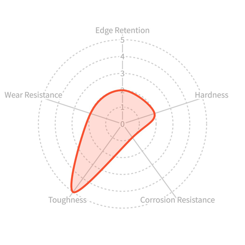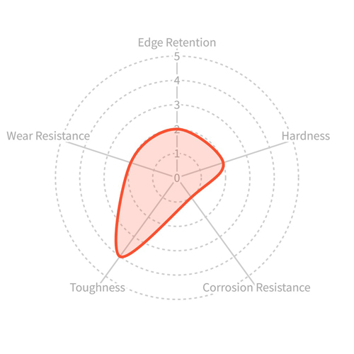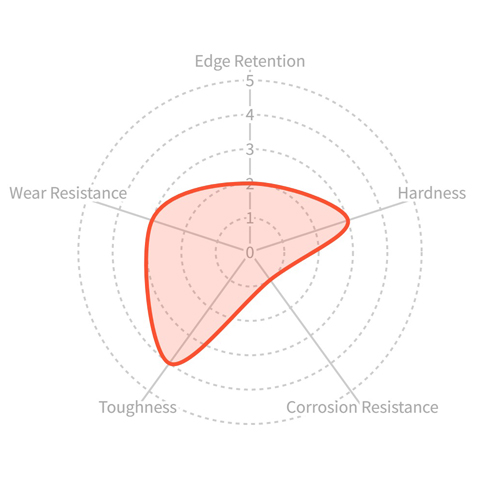 D2 is a high-carbon tool steel known for its great edge retention and toughness. While not classified as stainless, it does have some corrosion resistance. D2 is commonly utilized in outdoor and heavy-duty knives due to its durability.