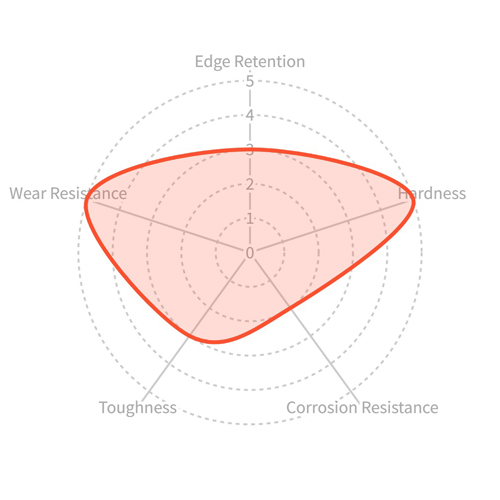 BG42 is a stainless steel known for its exceptional wear resistance and edge retention. It offers superior performance and is often used in high-end knives where longevity is prioritized.